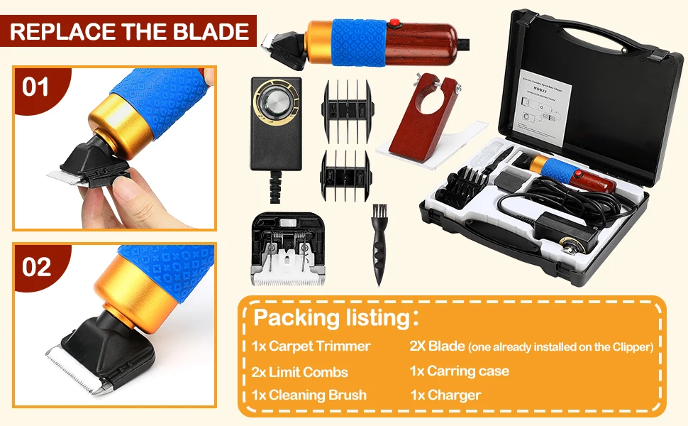 Thoughtful Combination: In addition to the carpet shaver, we will additionally provide 2 pieces of limit combs, each in two different sizes of 3mm, 6mm, 9mm and 12mm, easy to install and replace to suit different conditions, Also we will provide cleaning brushes to keep your carpet engraving machine scissors clean